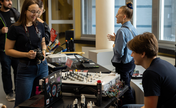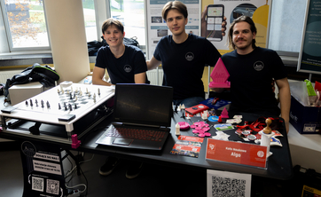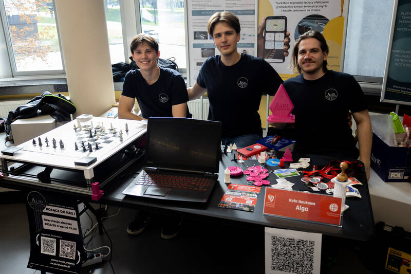 KN Algo zgłosiło do konkursu swój autorski Szach-Mat 2.0, w kategorii projekt inżynierski. To nowoczesny, interaktywny system do gry w szachy, który łączy tradycyjną planszę z elementami automatyki i sztucznej inteligencji. Pionki poruszają się w nim automatycznie.
