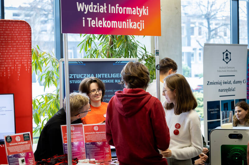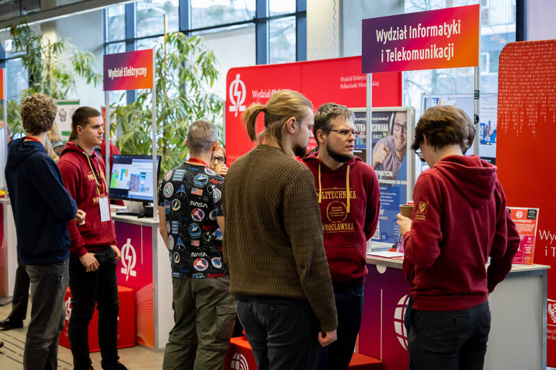 Podczas wydarzenia zaprezentowały się wszystkie wydziały PWr. Dodatkowo pracownicy Centrum Rekrutacji odpowiadali na pytania dotyczące naboru, terminów rekrutacji i potrzebnych dokumentów.