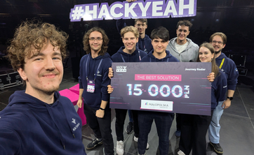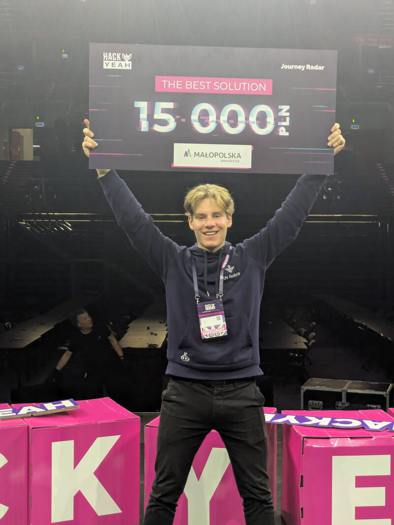 – To bardzo fajne doświadczenie. Od soboty rano do powrotu w niedzielę wieczorem nie spaliśmy przez 40 godzin. Byliśmy zespołem, bardzo dobrze nam się razem pracowało. I efekty pracy były widoczne, kiedy po wielu godzinach staliśmy na scenie z wielkim talonem. To było bardzo satysfakcjonujące – przyznaje Dawid Linek, ze zwycięskiego zespołu KN Solvro.