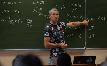 The lecture was given by Dr. Adrian Lewandowski and Dr. Ewa Frączek from the Department of ICT and Telecommunications. They used simple mathematical models to discuss the requirements that the known symmetries of physical laws impose on existing elementary particles and the interactions between them.